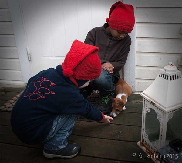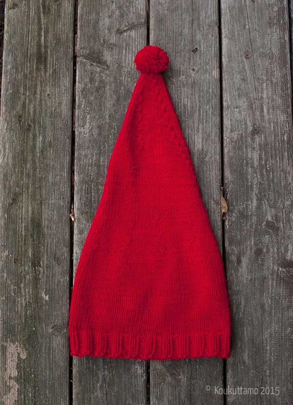 Nyt jouluttaa niin kovasti, että piti neuloa nuorimmaisille ulkokäyttöön tonttulakit. Juniori on lakista varsin innoissaan, vanhemman mielestä tonttulakin pitäminen julkisesti on vähän noloa. Tätä hiippalakkia voi mielestäni kyllä pitää muulloinkin kuin joulun aikoihin jos vain valitsee väriksi muun kuin joulunpunaisen. Ja jos oikein jouluttaa, niin tupsun sijaan voi kiinnittää ison kulkusen. Lankana lakissa on Debbie Blissin Rialto DK, joka on ihanan pehmeää 100% merinovillaa. Ihan kovien pakkasten lakki tämä ei ole, ellei laita lakin sisään vuorikangasta. Täällä meillä on ollut sen verran leutoa, että lakilla on pärjännyt ulkosalla hyvin. Juniorille olen laittanut kypärämyssyn alle. Hiippalakki on aika nopea tekoinen, eli vielä ehtii jouluksi. Hiippalakin ohje löytyy Koukuttamon ohjeita ja opastusta -sivuilla. Kehtaisikohan itsekin liikuskella hiippalakissa? Mieli kyllä tekisi!